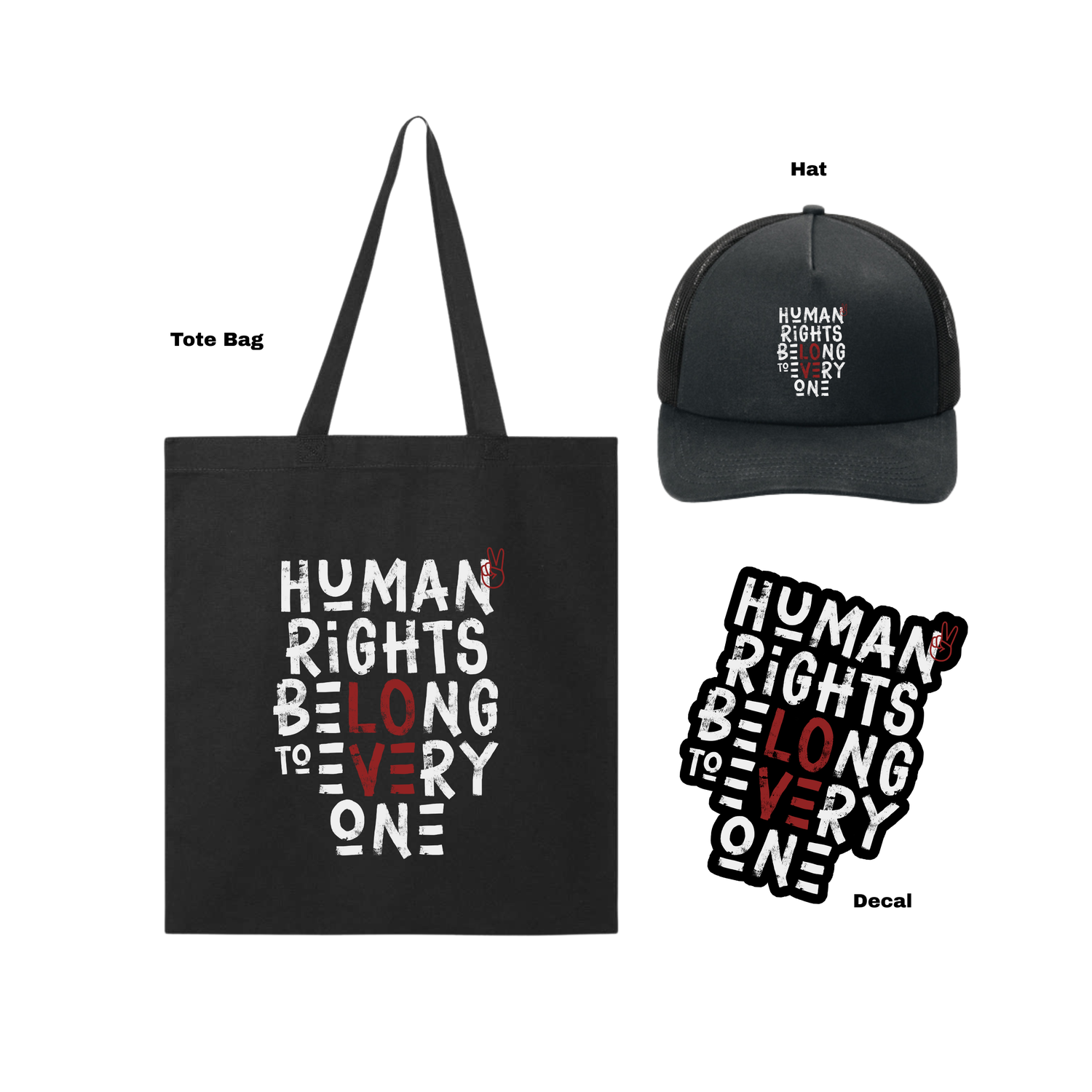 Make a bold statement for equality and justice with the “Human Rights Belong to Everyone” collection. Featuring a unified design across a tote bag, hat, and decal, this collection lets you carry, wear, and display your commitment to human rights every day.